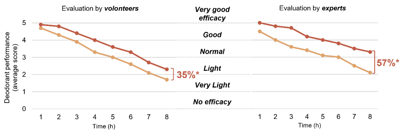Fermentované laktobacily obsahujú enzýmy, ako sú hydrolázy, deesterázy, reduktivázy a oxidázy, ktoré neutralizujú pachy, prirodzene znižujú zápach a majú dezodoračné vlastnosti. Tieto zložky dokážu premeniť pachové zlúčeniny (amíny, merkaptány, estery, aldehydy, tioly a alkoholy) na väčšie a ťažšie zlúčeniny, s vyššou molekulovou hmotnosťou, preto sa tieto pachové zlúčeniny už z pokožky tak ľahko neodparujú a zápach je menej vnímateľný.