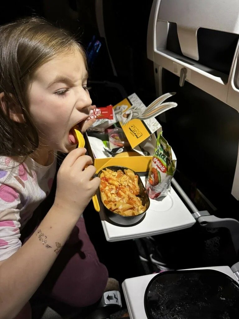 Takže sme zvolili trochu iný postup – cestovali sme deň vopred 6 hodín do Viedne, odkiaľ sme leteli do Abu Dhabi, kde sme mali prestupné miesto na let do Colomba. Našťastie sme nemuseli dlho čakať, mali sme na prestup cca 2 hodinky – ideálny čas na jedlo. Prvý let trval cca 4,5 hodiny, príjemne ubehol, pozreli sme si 2 filmy a ani sme sa nenazdali a už sme boli na letisku v Abu Dhabi. Ten druhý let už ale nebol taký príjemný – Miška už v tomto neskorom večernom čase bola unavená a hladná, no našťastie sme na tomto lete stretli príjemnú slovenskú letušku, ktorá jej priniesla jedlo medzi prvými – a dokonca to nebolo klasické curry menu (ktoré Miške úplne nesadlo), ale detské menu – cestoviny s paradajkovou omáčkou. Neviem, či boli také dobré, alebo bola taká hladná…