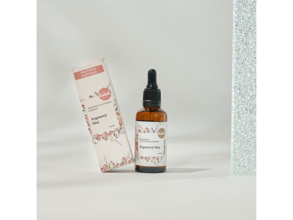 NÁŠ TIP: Vyskúšajte ho ako intenzívnu kúru vo forme horúceho zábalu pre ošetrenie vlasov. Olej zahrejte na vodnom kúpeli, naneste po celej dĺžke vlasov a premasírujte aj pokožku hlavy. Nechajte pôsobiť aspoň 30 minút a vlasy umyte ako zvyčajne.Arganový olej je vhodný pre všetky typy pleti, najmä však zrelšiu starnúcu pleť, a využitie nachádza aj pri starostlivosti o pokožku celého tela, vlasy, vlasovú pokožku a nechty. Do pokožky sa rýchlo vstrebe a neupcháva póry. Zabraňuje starnutiu kožných buniek, udržiava vodu v pokožke a pleť nie je vysušená. Obsahuje nenasýtené mastné kyseliny, skvalény, fytosteroly (podporujú tvorbu kolagénu v pokožke), fenolové zlúčeniny (ochraňujú pokožku pred voľnými radikálmi), triterpenické alkoholy (ochrana kože, antifugálne a antivírusové účinky), steroly (zlepšujú mikrocirkuláciu, spomaľujú starnutie, protizápalové účinky, chránia pred UV žiarením)… Má schopnosť napnúť pokožku, vyhladiť jemné vrásky a spevniť ju. Posilňuje lámavé nechty. Pravidelná masáž nechtov a pokožky okolo nechtov ich posilní a eliminuje tvorbu záderov. Vlasom dodáva lesk a posilňuje ich štruktúru. Pár kvapiek rozotrite v dlaniach a votrite do spodnej dĺžky vlasov - budú lesklejšie a nebudú elektrizovať. Je možné ho tiež použiť ako vlasovú kúru vo forme horúceho vlasového zábalu. Pre posilnenie vlasových korienkov a zlepšenie stavu vlasovej pokožky (pri problémoch s vysušenou kožou či lupinami a svrbením) odporúčame masáž týmto olejom po dobu 5-10 minút. Vlasy môžete potom umyť, alebo nechať olej pôsobiť počas celej noci. Vďaka tomu, že je termostabilný je možné ho používať aj pre ochranu vlasov pri fénovaní a žehlení - odporúčame však dodržať nižšiu teplotu žehlenia, arganový olej je stabilný do teploty cca 180°C. Rastlinné oleje z našej ponuky sú lisované za studena, čo je veľmi šetrný spôsob spracovania, vďaka ktorému si uchovávajú maximum prírodných vitamínov, esenciálnych mastných kyselín, antioxidantov a ďalších BIOaktívnych látok. Na rozdiel od ropných derivátov, ktoré majú nulový obsah prospešných látok a majú v podstate len jedinú funkciu - zabrániť strate hydratácie, sú rastlinné oleje pre našu pokožku prirodzenejšou voľbou. Okrem toho, že taktiež udržiavajú hydratáciu, zmäkčujú a zjemňujú, ich zložky dokáže pokožka naozaj využiť vo svoj prospech. Môžeme tak s ich pomocou riešiť a zmierňovať rôzne kozmetické problémy.