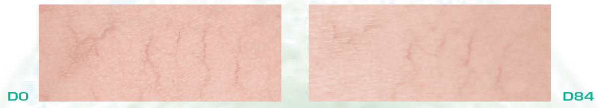 - vďaka obsahu klinicky testovanej látky Dermochlorella je redukovaná viditeľnosť a tvorba červených žiliek, začervenanie a pigmentácie
