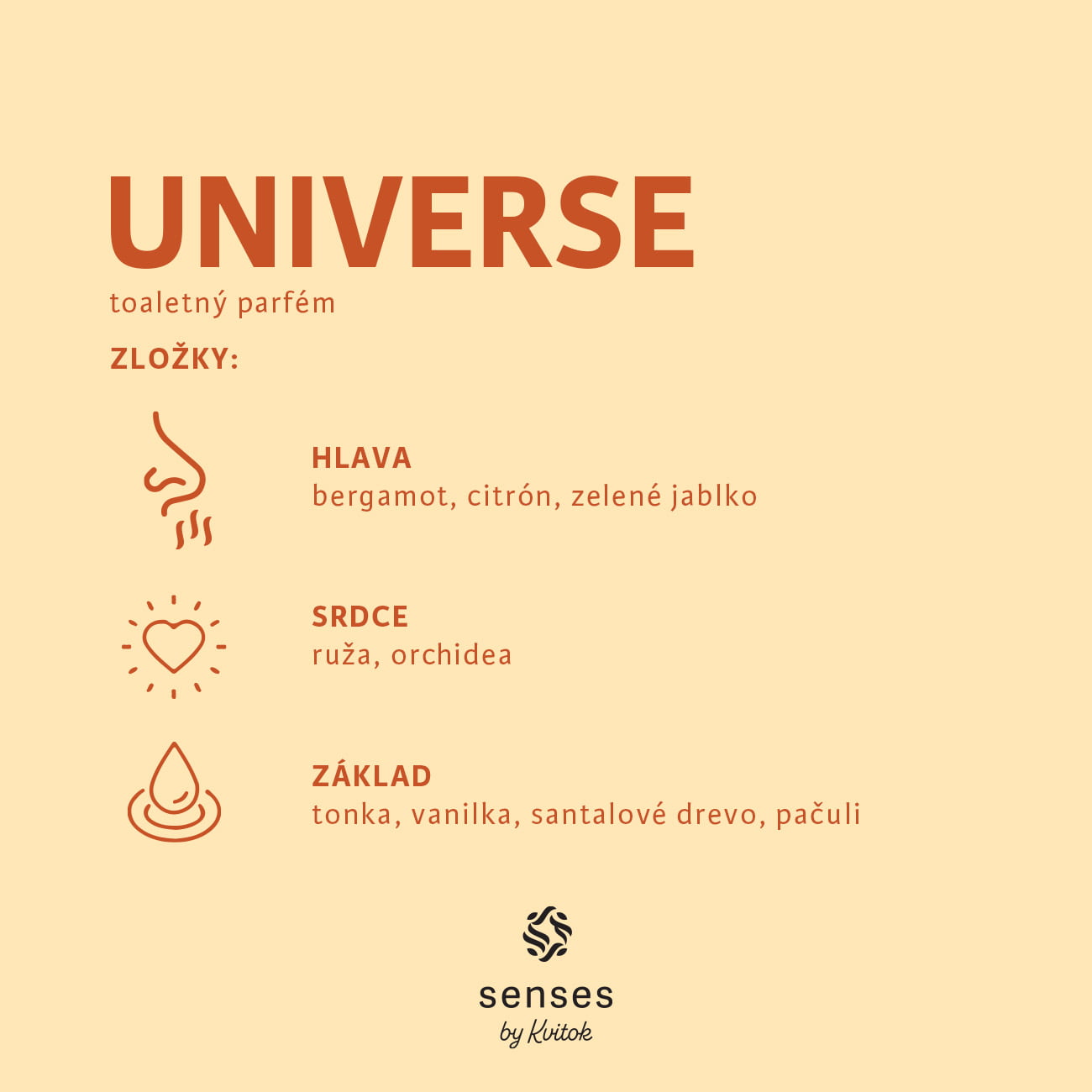 Senses by Kvitok® je relatívne nová značka, ktorá spája luxusné prírodné vône s účinnosťou kvalitnej kozmetiky. Naša filozofia je jednoduchá: potešiť nielen vašu pokožku, ale aj vaše zmysly. Vône, ktoré vytvárame, sa rodia z čistých esenciálnych olejov a rastlinných extraktov, spracovaných podľa princípov parfumérskeho umenia. Výsledkom sú nezabudnuteľné vonné kompozície, ktoré vás očaria už pri prvom ovoňaní.