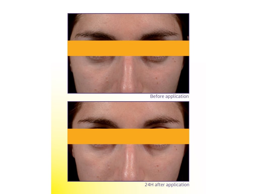 - vďaka obsahu klinicky testovanej látky EarlyBoost dochádza 2 hodiny po aplikácii k zvýšeniu hydratácie o 32% a po 24 hodinách k redukcii opuchov, tmavých kruhov a vyhladeniu pokožky