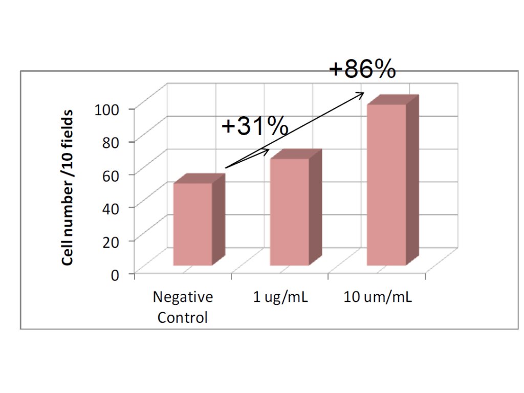 Klinické štúdie preukázali, že na zámerne poranenej koži stimuluje fibroblasty, čo napomáha regenerácii pokožky poškodenej napr. výskytom akné. Obnovuje pevnosť, pružnosť a zjednocuje tón pleti. Zmierňuje podráždenie, chráni pokožku pred nepriaznivými vplyvmi, bojuje proti príznakom starnutia, revitalizuje poškodenú kožu alebo dokonca redukuje strie.