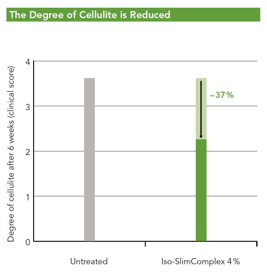 Náš tip: Pre lepšie účinky kombinujte s masážnym olejom Hĺbkový detox a masážnou kefou s výstupkami. Odporúčame tiež podporiť pevnosť pokožky zvnútra pomocou Beauty drinku alebo Collagen 5000 a naštartovať redukciu tuku pomocou Body restart.Celulitída je strašiakom pre mnohé ženy – nezáleží na váhe, ani na veku. Bohužiaľ, nestačí len natrieť na seba anticelulitídny krém a čakať zázraky. Zabojovať proti nej môžeme rôznymi spôsobmi, no najlepšie účinky sa dosiahnu kombináciou zmeny stravovania, cvičenia, lymfodrenáže, masáže... Svoje miesto tu určite má aj používanie kozmetických prípravkov, ktoré dokážu zlepšiť prekrvenie, spevniť pokožku a zmierniť viditeľnosť celulitídy. V našej prémiovej kolekcii Solution by Kvitok tak pribudol aj nový pomocník na ceste za krajšou a pevnejšou pokožkou - Zoštíhľujúci a formujúci anticelulitídny krém. Je však potrebné mať reálne ciele, keďže niečo, s čím bojujete roky, nie je možné definitívne odstrániť za pár týždňov a len natieraním krému. Nesľubujeme teda úplné odstránenie celulitídy a zoštíhlenie o niekoľko konfekčných veľkostí, ale veríme, že sa podarí ju čiastočne zmierniť a pokožka bude hladšia, pevnejšia a pružnejšia. Kľúčovými aktívnymi látkami tohto krému sú prémiové extrakty morskej riasy spiruliny, sójové izoflavóny, kofeín a carnitín (Iso-Slim Complex), extrakty z čili papričiek a semienok bielej horčice (ShapePerfection). Komplex extraktu spiruliny, sójových izoflavónov, kofeínu a carnitínu (Iso-Slim Complex) inhibuje tvorbu nových adipocytov (tukových buniek), podporuje odbúravanie tukov, a tiež výrazne zlepšuje pevnosť, pružnosť a vyhladenie pokožky podporou produkcie kolagénu v koži. Tieto účinky sú preukázané na základe klinických štúdií in vivo počas 6-tich týždňov (ženy vo veku 39-58 rokov):